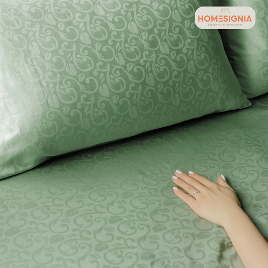 Soft Coral Green Jacquard Floral Patterned King Size Bedsheet