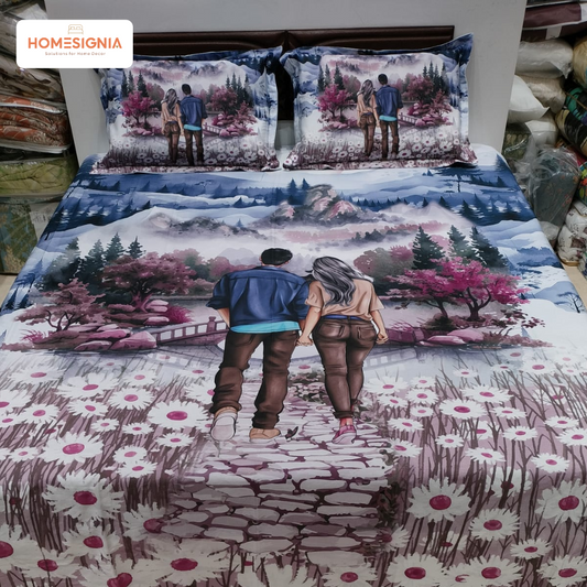 300 TC Blue Romantic Couple Digital Bedsheet