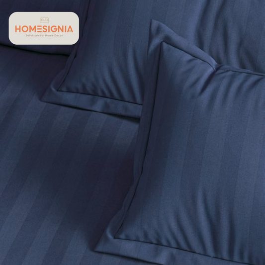 300 TC Navy Blue Satin Stripe Cotton Bedsheet Set
