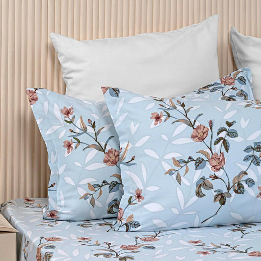 280 TC Light Blue Floral King Size Bedsheet Set