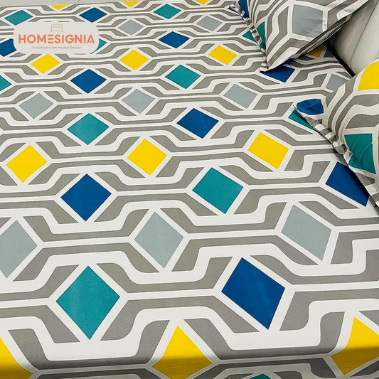 Elastic Multicolor Geometric Cotton Blend King Size Bedsheet
