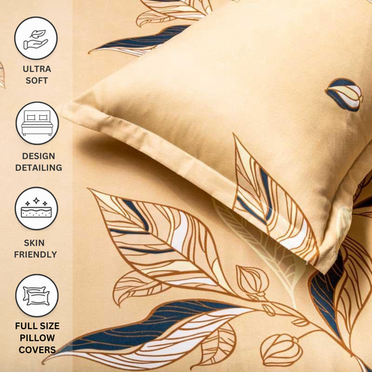 Elegant Beige Leaf Double Bedsheet with 2 Pillow Covers